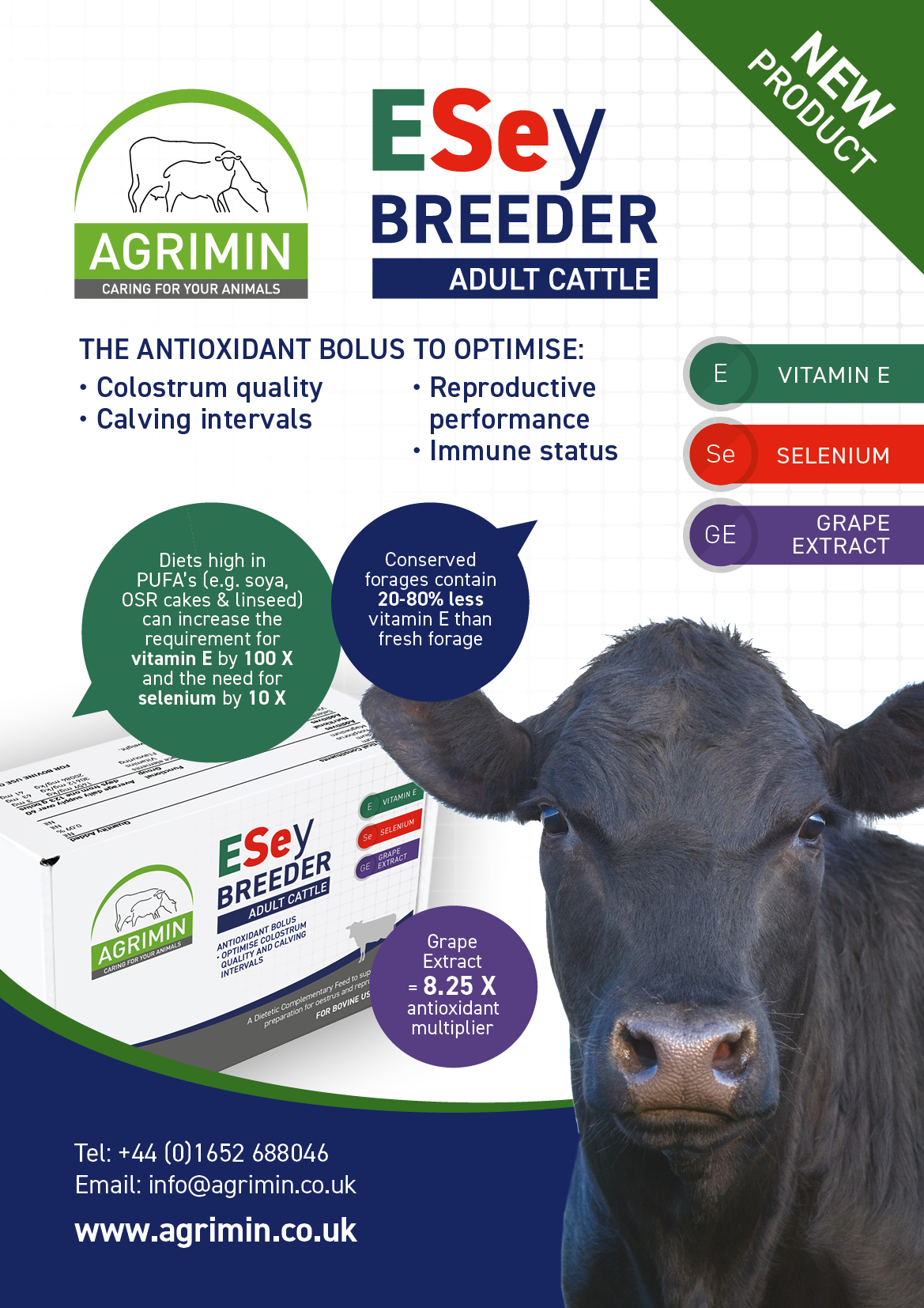ESey BREEDER ADULT CATTLE is designed to support antioxidant levels during the transition period when the cow is under stress and when vitamin E levels fall at calving.